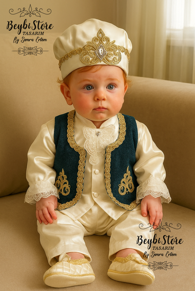 Özel olarak el yapımı olan bu çocuk sünnet takımı, miniklerin özel günlerini daha da unutulmaz kılmak için özenle tasarlandı. Her bir parça, kaliteli malzemelerle ve detaylara gösterilen özenle el işçiliğiyle üretilmiştir. Takım, şıklığı ve zarifliğiyle sünnet törenine katılan küçük beyefendilere benzersiz bir görünüm kazandırır. Hem konforlu hem de şık olan bu özel set, uzun yıllar hatırlanacak bir anı olarak öne çıkar. Çocuğunuzun bu önemli gününde hem şıklığı hem de rahatlığı bir arada sunan takımı tercih edebilirsiniz